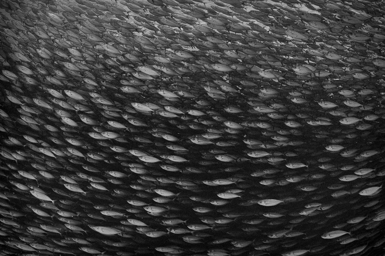 Akule, or bigeye scad, showcases a simple yet effective schooling behavior. Moving together in tight formations, these fish demonstrate unity in motion. This synchronized swimming serves as both a defense against predators and an efficient strategy for foraging. Observing the straightforward harmony of their schooling offers a glimpse into the practical adaptability of these marine creatures as they navigate the ocean together.