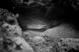 The cave provides a natural sanctuary for the shark, offering a sense of security and respite from the currents. The image captures the essence of a moment of quiet repose, allowing viewers to appreciate the inherent grace and adaptability of these mesmerizing marine creatures within their underwater realm.