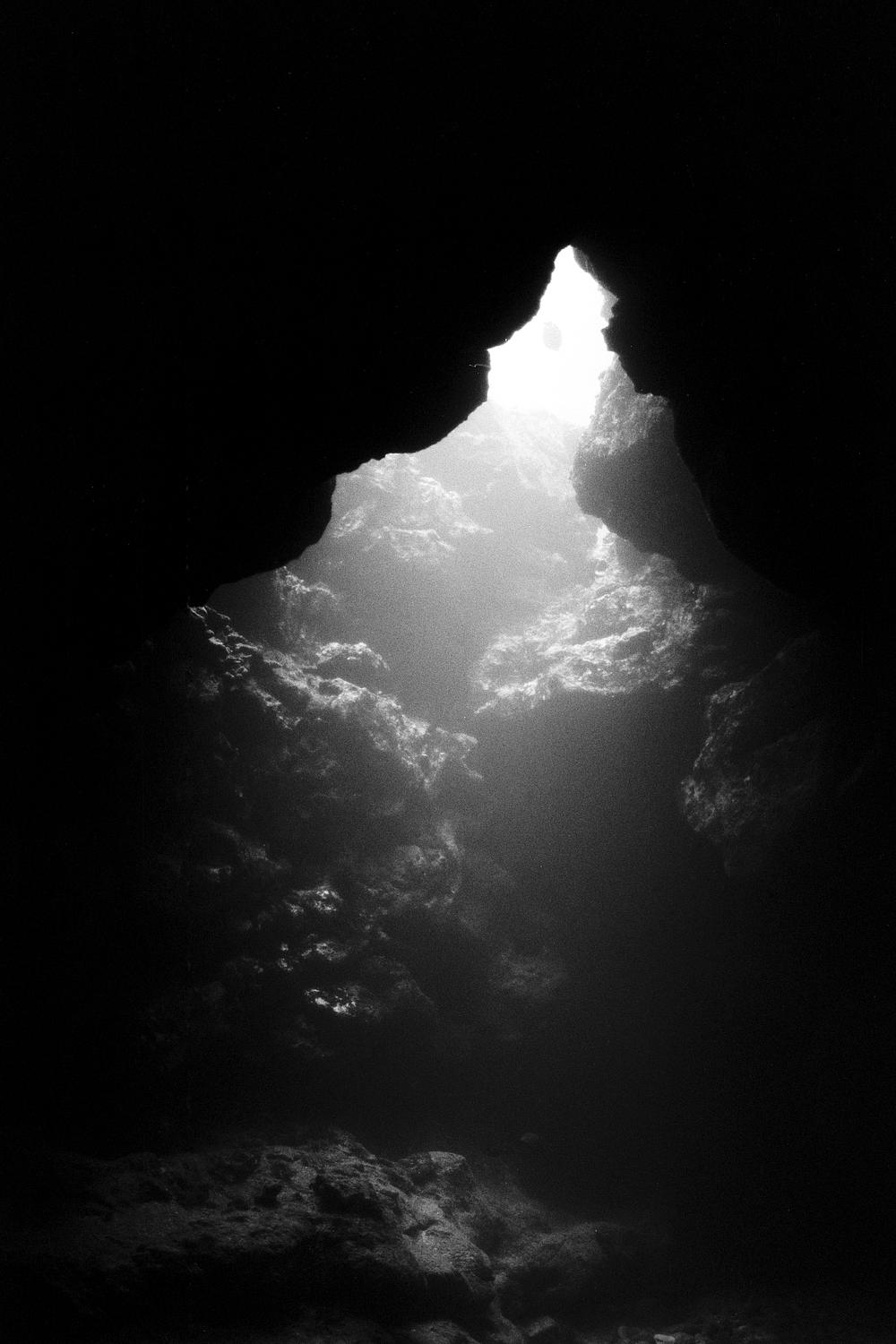 One of my earliest photographs in Hawaiian waters. This cave is located right out front of my house and my local dive spot I swim almost every other day. I always dive in to check who is home.